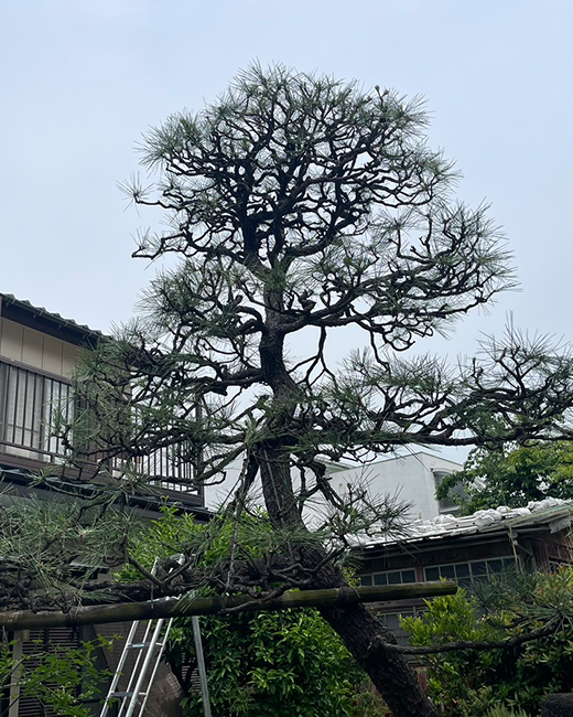 6メートルの松の木の剪定作業です。できる人が中々いなかったみたいで、放置していた松の木です。